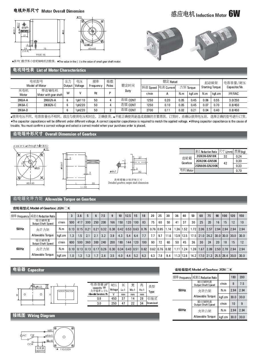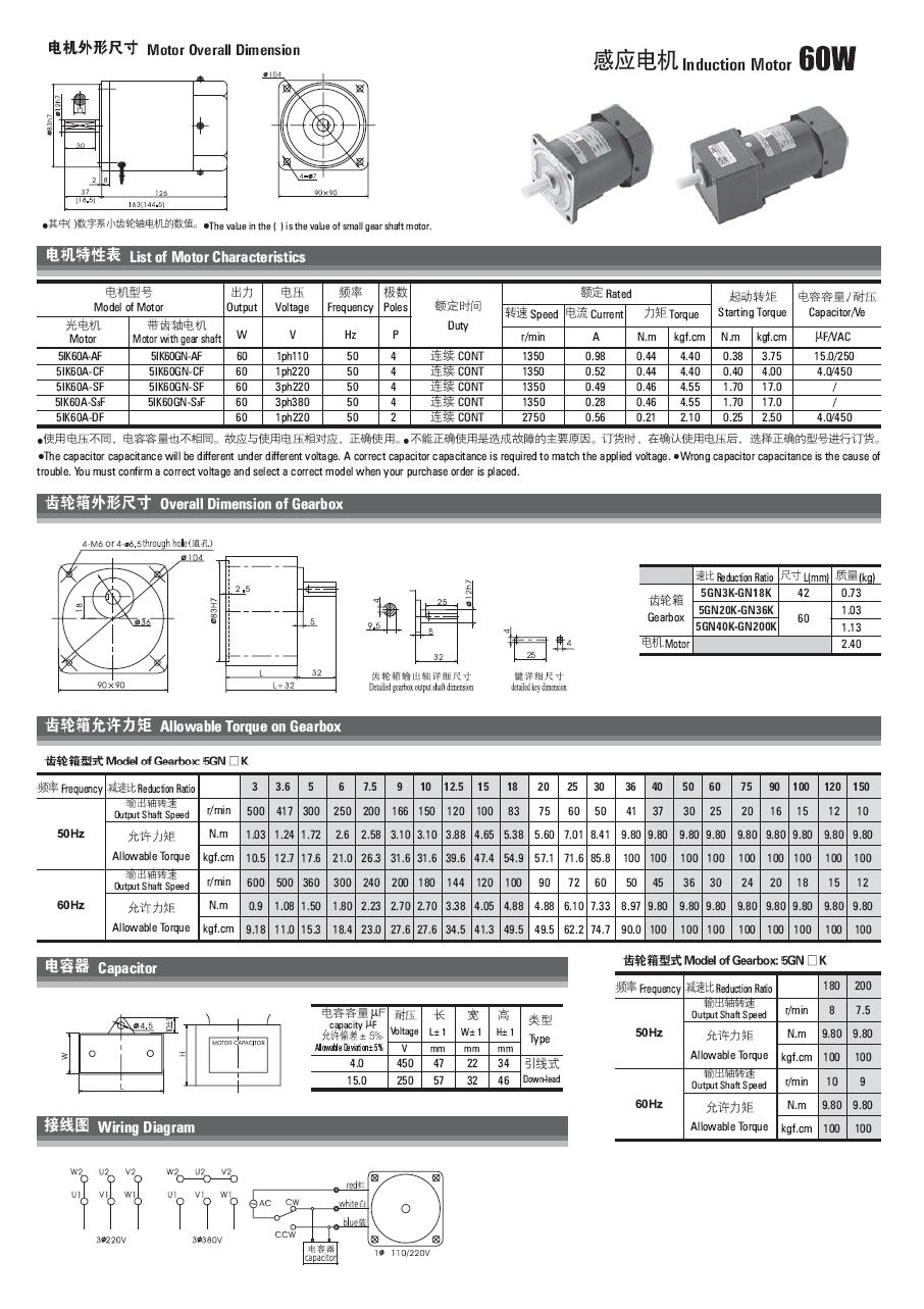| 4.5IK60W电机特性与外形尺寸 | |
