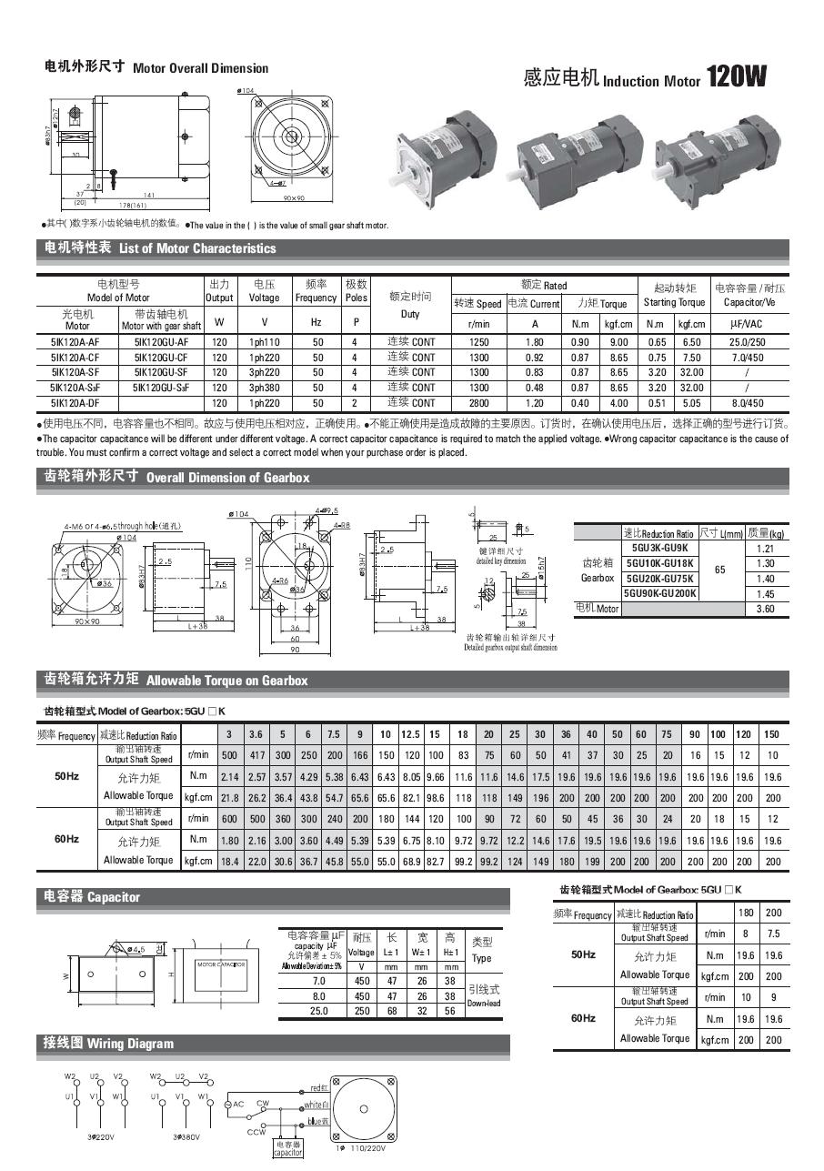 | 5.5IK120W电机特性与外形尺寸 | |